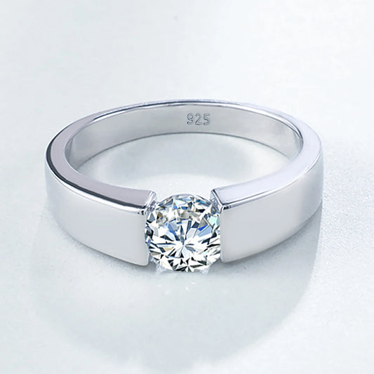 Real 0.5-1 Carat Round Cut Moissanite Ring Men Solid Sterling Silver 925 Certified Wedding Rings Couple Luxury Jewelry Trend New