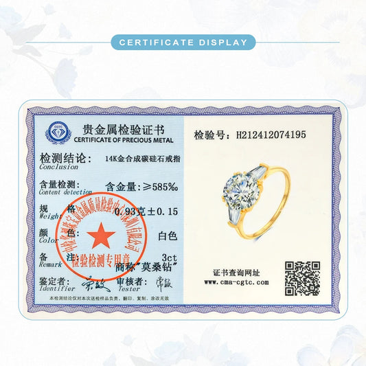 Romantic 9mm 3ct Moissanite Diamond Ring AU585 14K Gold D Color VVS1 Wedding Band Rings for Women Engagement Luxury Jewelry
