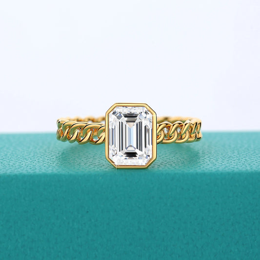 Super Shiny 2ct Emerald Cut Moissanite Ring for Women 14K AU585 Gold Linked Together Soulmates Wedding Bands Bridal Jewelry