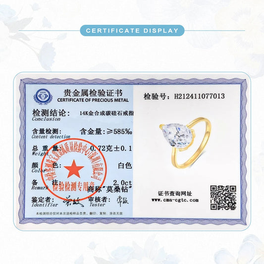 Original 100% 14K Gold Ring for Women Pear Cut 7*10mm 2ct Moissanite Diamond Rings AU585 K Gold Certified Engagement Jewelry